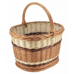 Einkaufskorb Basler 3-färbig, oval mit einem Querhenkel aus Volllweide handgeflochten.